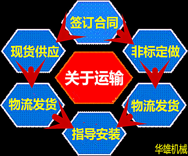 華雄機(jī)械對(duì)于常規(guī)產(chǎn)品現(xiàn)貨供應(yīng),當(dāng)天訂貨,當(dāng)天發(fā)貨,購(gòu)買(mǎi)便捷。我公司按照合同規(guī)定的時(shí)間、地點(diǎn),把貨物運(yùn)輸?shù)侥康牡?。貨物托運(yùn)后,我公司按照物流變更隨時(shí)通知收貨人。對(duì)于非標(biāo)定制,我公司在預(yù)定工期內(nèi)完工之后及時(shí)通知客戶,如客戶有指定物流或快遞,我們會(huì)按照客戶要求發(fā)貨,如果客戶無(wú)特殊制定物流或快遞,我公司默認(rèn)德邦物流發(fā)貨。
